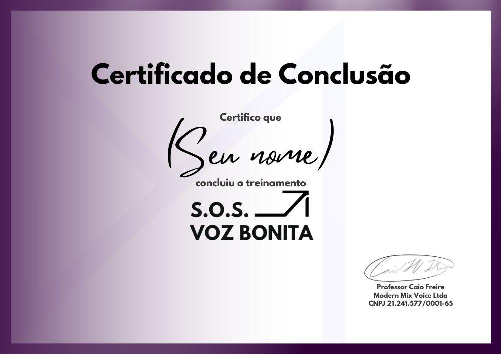 Ao final da sua jornada, você receberá como troféu o seu certificado S.O.S. Voz Bonita e um bônus especial surpresa.